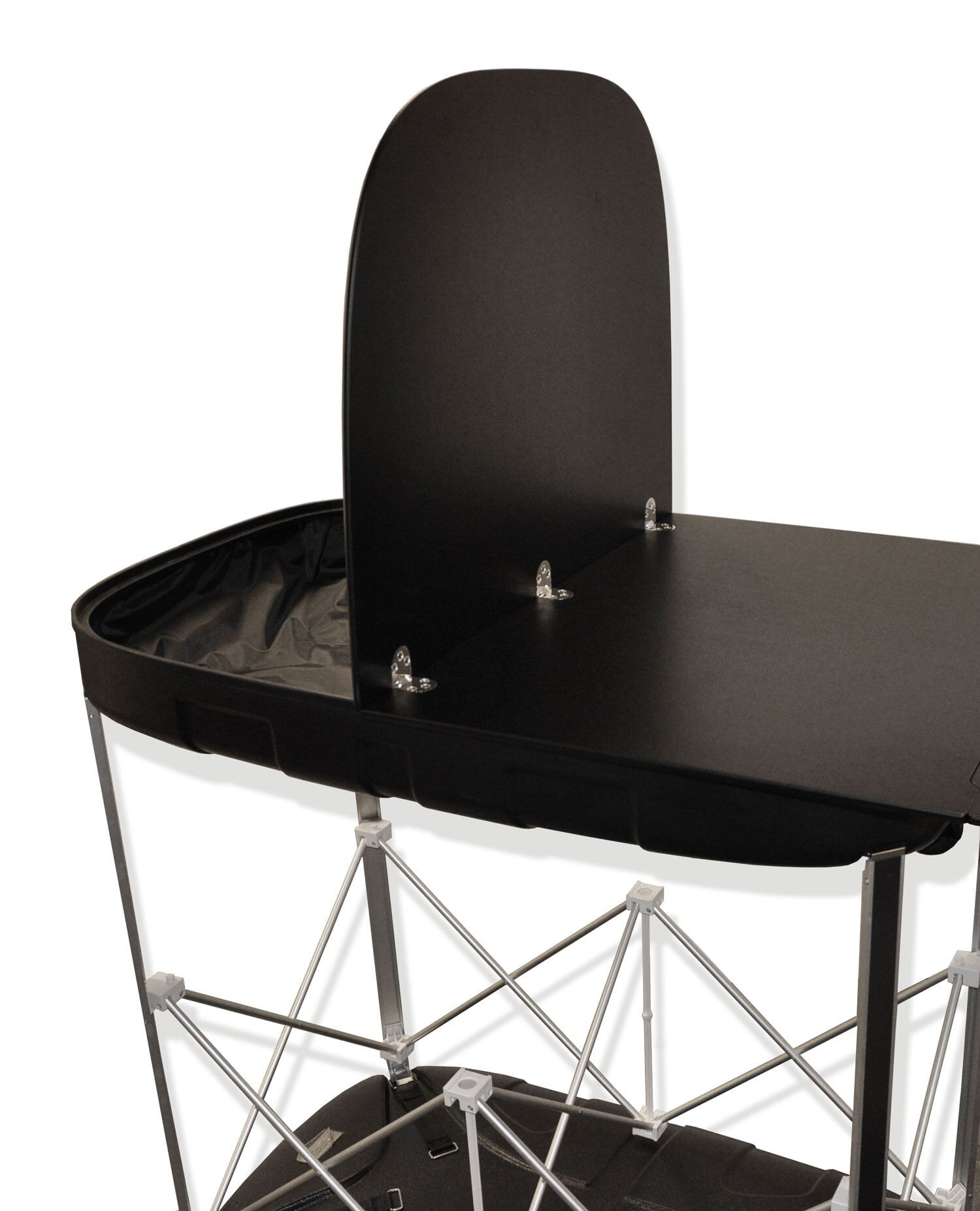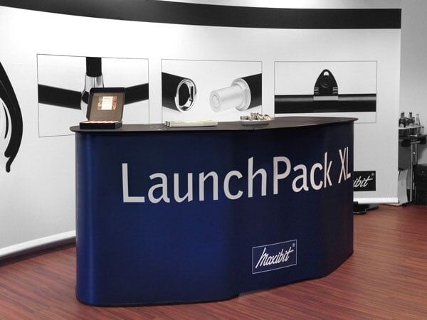 LaunchPack XL är förmodligen det största portabla mässbordet på marknaden – och den har plats för en 12 meters backdrop. LauncPack XL har generös lagringsplats för dina broschyrer etc. De översta hyllorna kan öppnas för att ta fram två extra, smart dolda, förvaringsfack för dina giveaways.