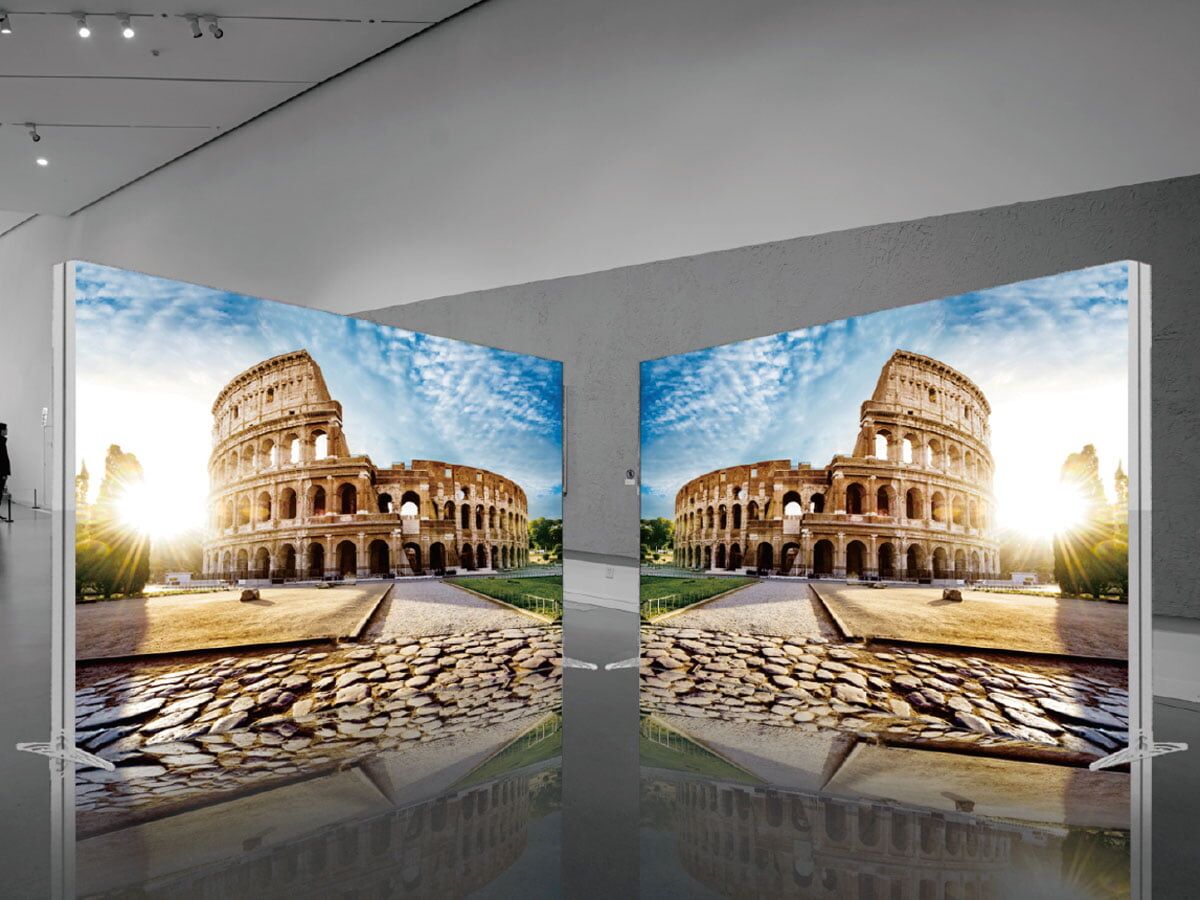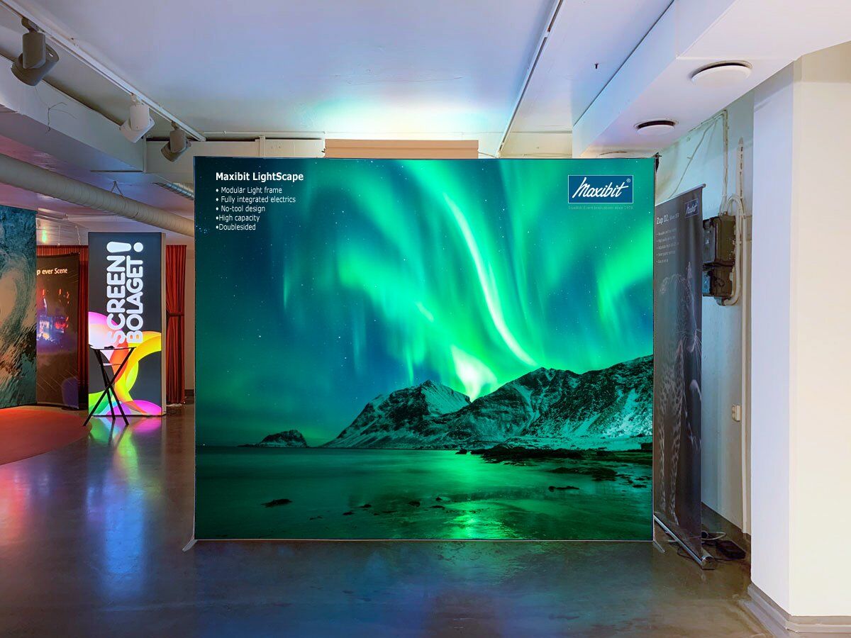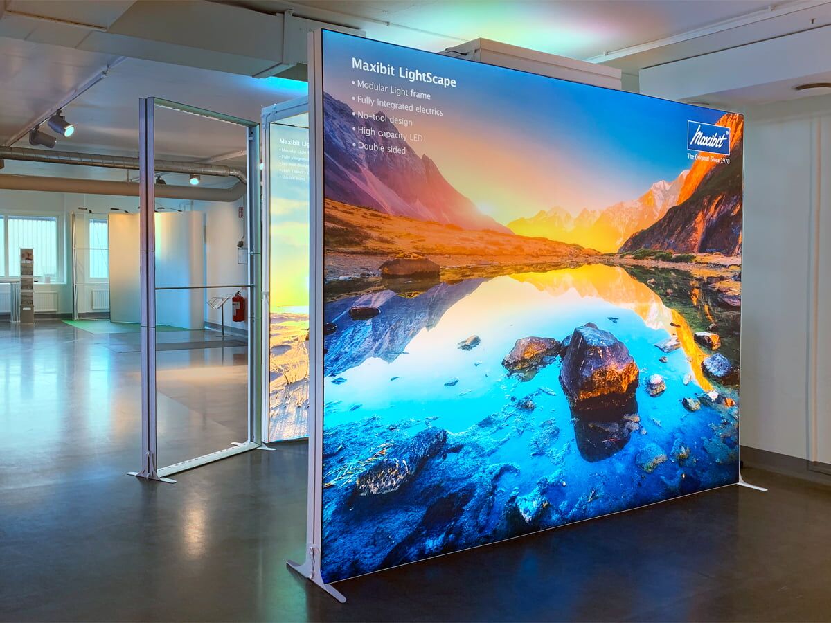 Maxibit LightScape är en ljuslåda utöver det vanliga. Kombinera olika element för att passa ditt evenemangsutrymme och skapa en back drop eller en hel monter som kombinerar hållbara aluminiumramar med textiltryck.